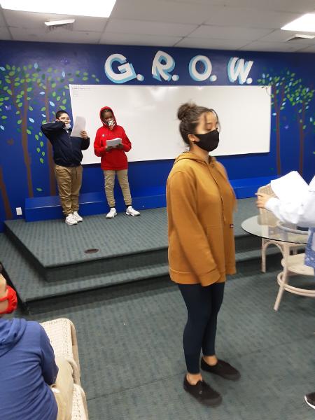 Middle school students rehearsing for the holiday show.